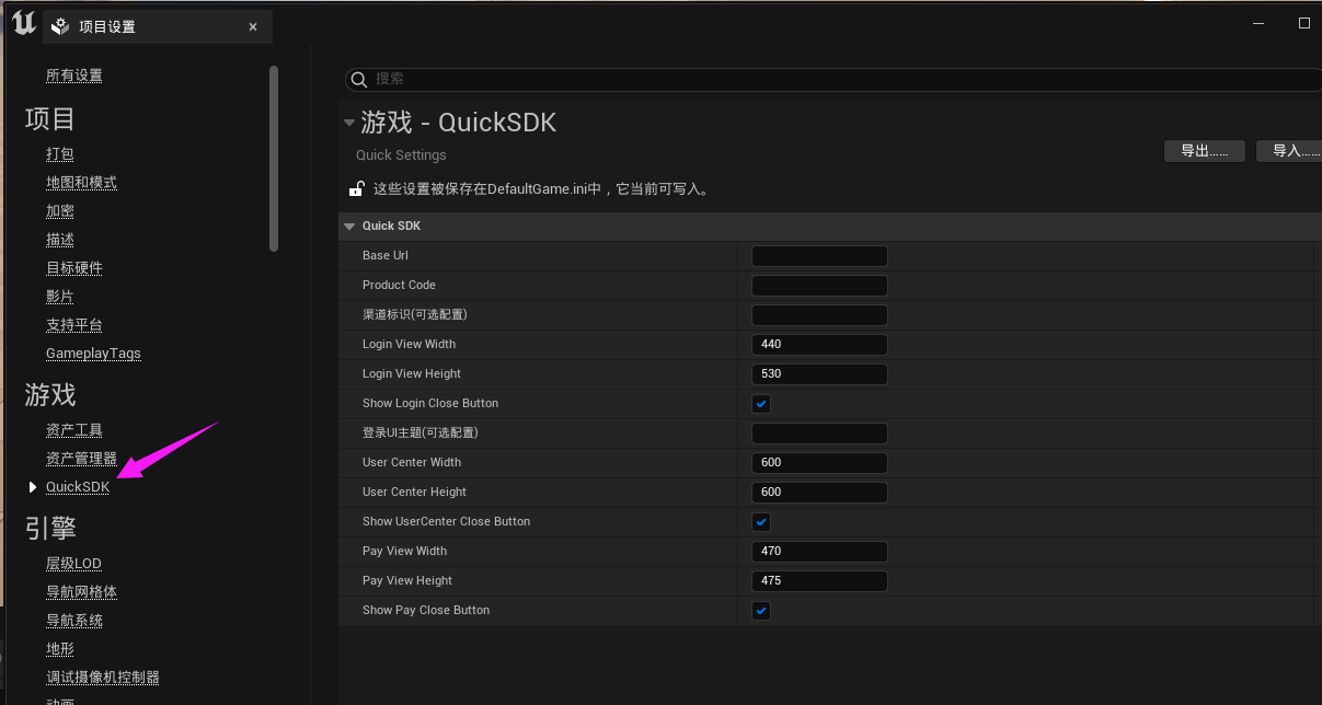 已获取 QuickSDK 插件包(通常为 QuickSDK ⽂件夹,包含 QuickSDK.uplugin )