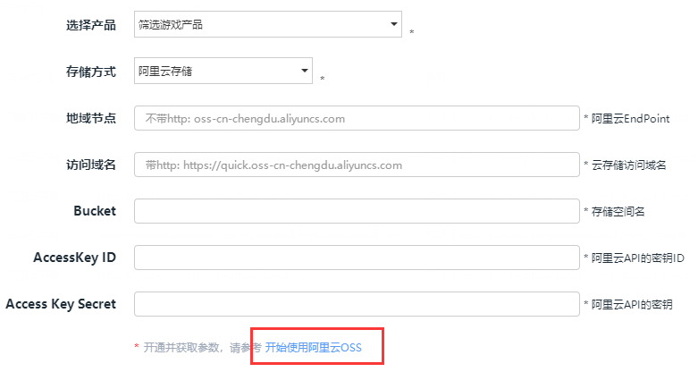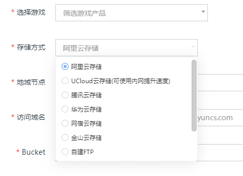 目前支持网宿云、阿里云、腾讯云、华为云跟金山云,选择对应的云存储后,可以直接点击下方链接跳转到云存储服务商后台进行购买,购买成功后将获取的参数配置到SDK后台便可
