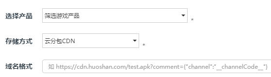 c. 下载包存储里配置好域名格式,比如: https://cdn.huoshan.com/xxxxx.apk?comment={"channel":"__channelCode__"}