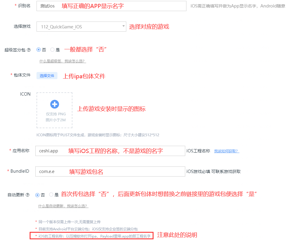 应用名称是填写iOS工程名称,将ipa解压, Payload文件夹里面的完整应用名称XXX即为工程名(需带后缀.app , 最终填写格式是XXX.app)